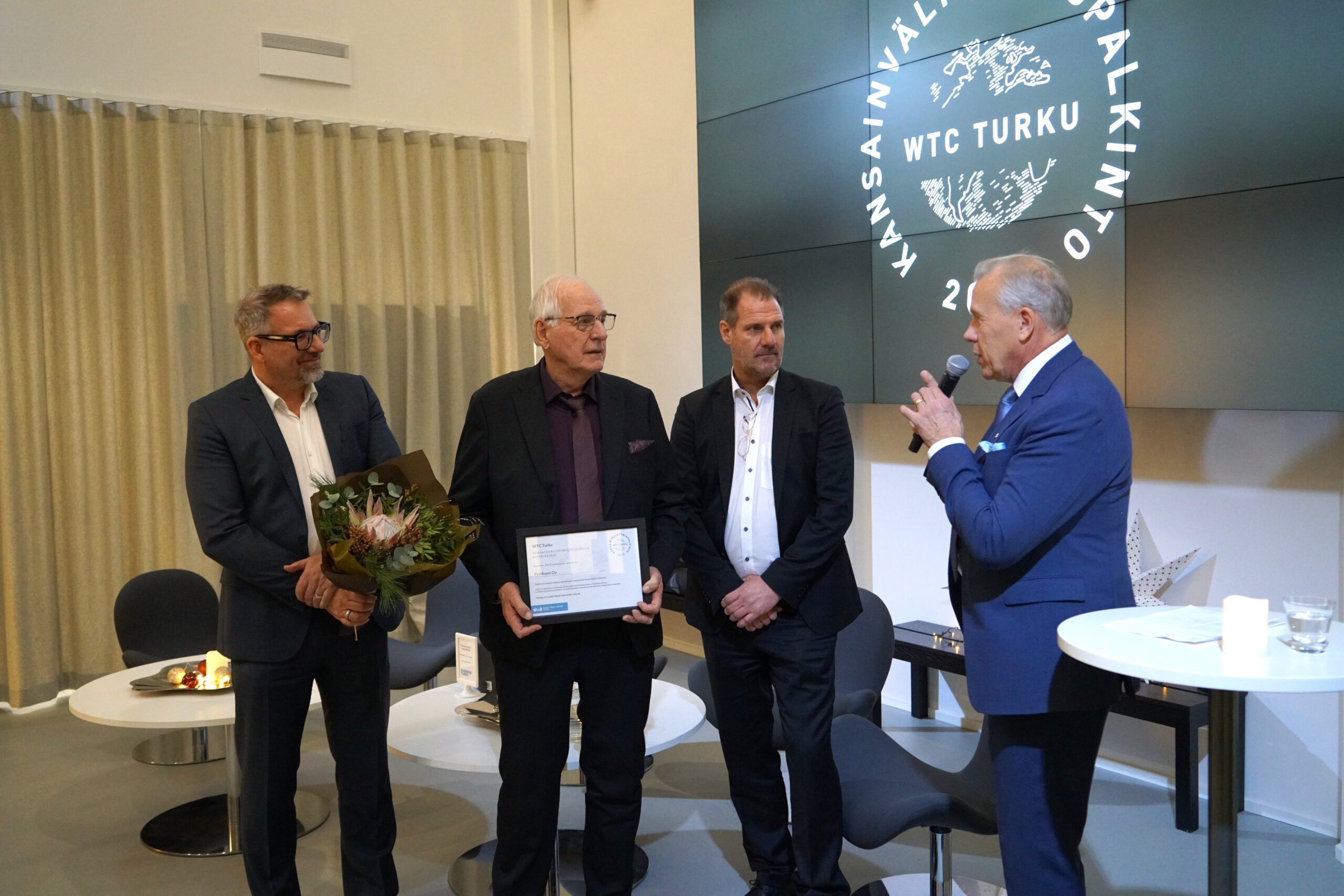 The WTC Turku Internationalization Prize is awarded annually to a company that has achieved international growth and strengthened the visibility of Finnish expertise globally. The recipient is selected by the Board of WTC Turku ry in cooperation with Business Turku, the Turku Chamber of Commerce, and the Federation of Finnish Enterprises in Southwest Finland.
