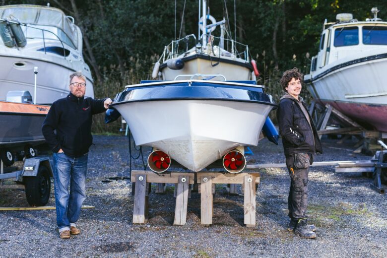Tuulisena ja aurinkoisena syyspäivänä hirvensalolaisen venetelakan pihalla OliOil Oy:n hallituksen puheenjohtaja Kristian Laiho tutkii yrityksen aluksen prototyyppiä sen rakentaneiden Esa Martinin ja Iiro Maunulan kanssa. Virtaviivainen ja tummansinisen pinnan saanut alus on nostettu talviteloille.